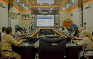 LAMPUNG7COM – Metro | Asisten II Setda Kota Metro, Yerri Ehwan bersama Tim Pengendalian Inflasi Daerah (TPID) Kota Metro mengikuti kegiatan rutin mingguan yaitu Rapat Koordinasi (Rakor) Pengendalian Inflasi Daerah yang dilakukan secara virtual di OR Setda Kota Metro, Selasa (12/03/2024).