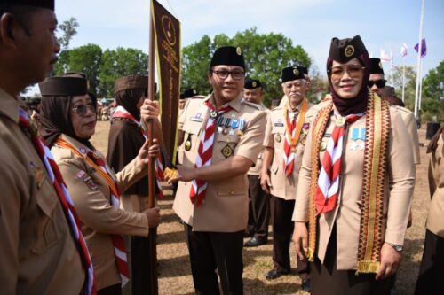 Ketua Kwarcab Pramuka Kota Metro Silfia Naharani hadir mendampingi Walikota Metro Wahdi Siradjuddin, yang Bertindak selaku Ketua Majelis Pembimbing Cabang Kota dan memimpin secara langsung Apel Besar Hari Pramuka ke-62.