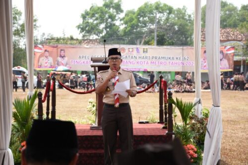 LAMPUNG7COM – Metro | Kwartir Cabang (Kwarcab) Pramuka Kota Metro peringati Hari Pramuka Nasional ke-62 Tahun 2023, dengan menggelar Apel Besar Hari Pramuka, di Lapangan Karangrejo Kecamatan Metro Utara, Sabtu (23/09/2023).
