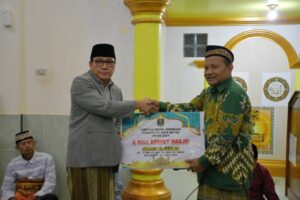 Pada kesempatan tersebut Walikota Metro menyalurkan bantuan hibah sebagai bentuk perhatian pemerintah kepada rumah ibadah, berupa 8 roll karpet masjid yang diserahkan secara simbolis oleh Wali Kota Metro dan diterima langsung oleh Ketua Takmir Masjid.
