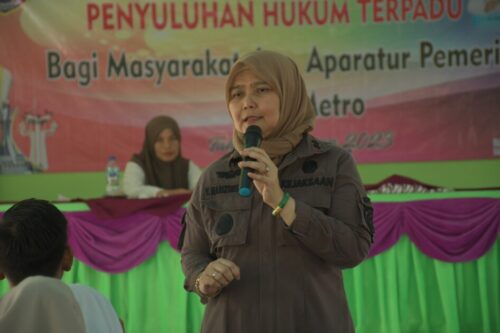 LAMPUNG7COM – Metro | Wali Kota Metro Wahdi Siradjuddin bersama Kepala Kejaksaan Negeri Metro Virginia Hariztavianne, menjadi narasumber dalam kegiatan Penyuluhan Hukum Terpadu bagi Masyarakat dan Aparatur Pemerintah Kota Metro, di Aula Kelurahan Yosodadi Metro Timur, Kamis (21/09/2023).