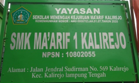 Selama 1998 hingga 2022, SMK Ma’arif 1 Kalirejo berada di bawah pengelolaan LP Ma’arif NU Kecamatan Kalirejo. Namun, pada 22 April 2022, terjadi perubahan kepemilikan yayasan. Yayasan yang sebelumnya dikelola oleh LP Ma’arif diambil alih oleh Asep Satriana, yang kini menjabat sebagai ketua yayasan baru, bersama dengan tiga individu lainnya, yaitu Candra Wijaya Kusuma, Diki Bahrul Alam, dan Vivi Lutfatul Isnaini. Sejak saat itu, sekolah dikelola oleh Yayasan Sekolah Menengah Kejuruan Ma’arif Kalirejo, yang tidak lagi berafiliasi dengan LP Ma’arif NU.