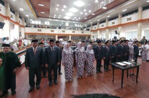 LAMPUNG7COM – Metro | Anggota Dewan Perwakilan Rakyat Daerah (DPRD) Kota Metro periode 2024-2029 resmi dilantik, di ruang rapat paripurna kantor DPRD Kota Metro, pada Senin (19/8/2024).