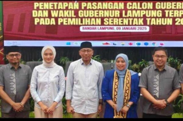 BANDAR LAMPUNG – Rapat Pleno Terbuka yang digelar di Hotel Emersia pada Kamis (9/1/2025), secara resmi menetapkan pasangan Rahmat Mirzani Djausal dan Jihan Nurlela sebagai Gubernur dan Wakil Gubernur Lampung…