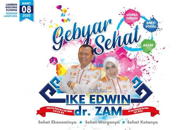 Gebyar sehat beragendakan lomba senam, bhakti sosial dan bazar, merupakan rangkaian kegiatan simpatik relawan Bintang yang tetap bersemangat mensosialisasikan pasangan Bintang :  Ike Edwin – Zam Zanariah kepada warga Bandar Lampung.