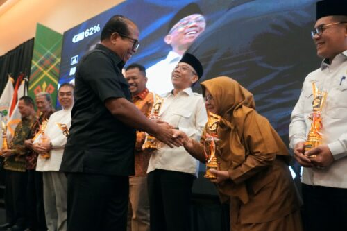 BANDAR LAMPUNG — Pj. Gubernur Lampung, Samsudin menyerahkan penghargaan dan tali asih kepada Marching Band…