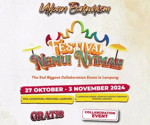BANDAR LAMPUNG – Pemerintah Provinsi Lampung direncanakan akan menggelar Festival Nemui Nyimah mulai tanggal 27 Oktober 2024 sampai dengan 3 November 2024.