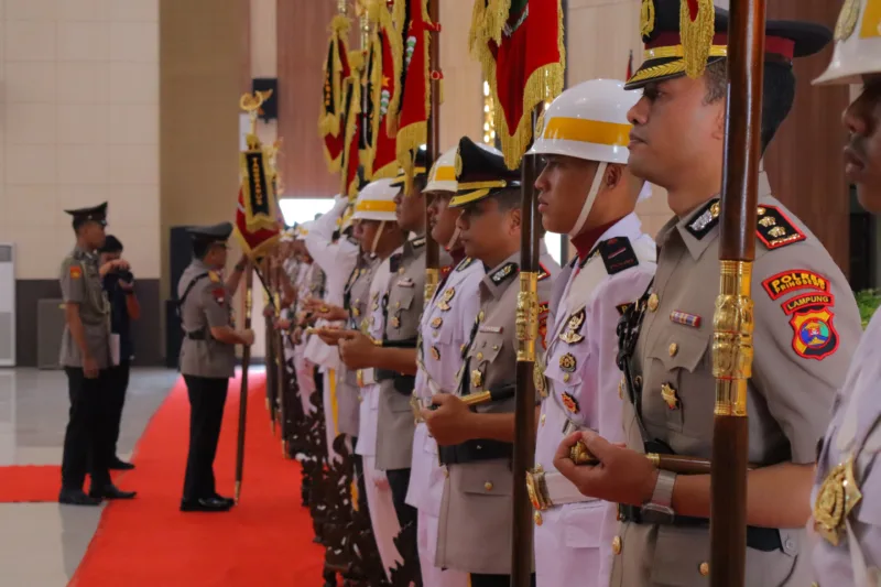 Kapolres Metro Polda Lampung menerima Tunggul Lambang Kesatuan pada saat Upacara hari jadi Polda Lampung ke- 28 bertempat di aula GSG Presisi Mapolda setempat, Rabu (2/10/24). Penyerahan Tunggul Lambang Kesatuan…