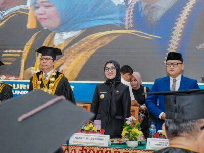 Hal tersebut diungkapkan Wakil Gubernur Lampung, Jihan Nurlela saat menghadiri Sidang Senat Terbuka dalam rangka pengukuhan 15 Guru Besar dari berbagai disiplin ilmu yang digelar oleh Universitas Islam Negeri (UIN) Raden Intan Lampung bertempat di Ballroom Universitas Islam Negeri (UIN) Raden Intan Lampung, Rabu (30/04/2025).