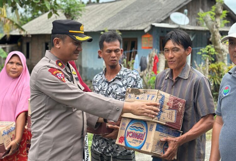Pasca Terjangan Banjir, Warga Mendapatkan Bantuan Sembako dari Polres Pesisir Barat