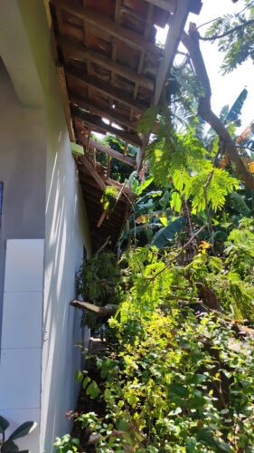 “Alhamdulillah tak banyak kerusakan, ranting hanya mengenai sedikit ujung rumah rian (tetangga).” Pungkasnya.