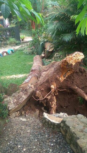 Keanehan yang dialami keluarganya terutama sang ibu, masih merasa tak masuk akal, pohon besar dengan diameter lebih kurang 70 cm dan tinggi 30 meter itu tumbang perlahan dari akarnya yang ternyata ia sadari telah lapuk (rapuh) dan tidak mengenai rumah sekitar, justru mengarah ke pekarangan kosong kiri depan rumah dan hanya ranting yang merusak sedikit ujung atap rumah tetangganya.