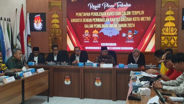 LAMPUNG7COM – Metro | Komisi Pemilihan Umum (KPU) Kota Metro gelar pleno terbuka penetapan 25 nama Calon Anggota Legislatif (Caleg) Dewan Perwakilan Rakyat Daerah (DPRD) yang terpilih dalam Pemilihan Legislatif…