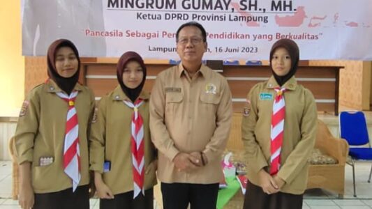 Ratusan pelajar Pramuka mengikuti sosialisasi Pembinaan Ideologi Pancasila di Aula SMA N 1 Terbanggi Besar,…